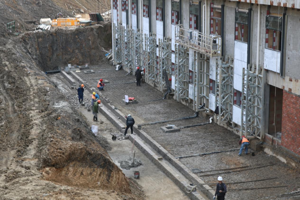 在會議中心北面,董事長查看了擋墻地基鋼筋拉網(wǎng)后,再赴會議中心西面查看管道鋪設(shè)施工,要求擋墻施工單位開投市政盡快完成管道施工,以加速擋墻澆筑。
